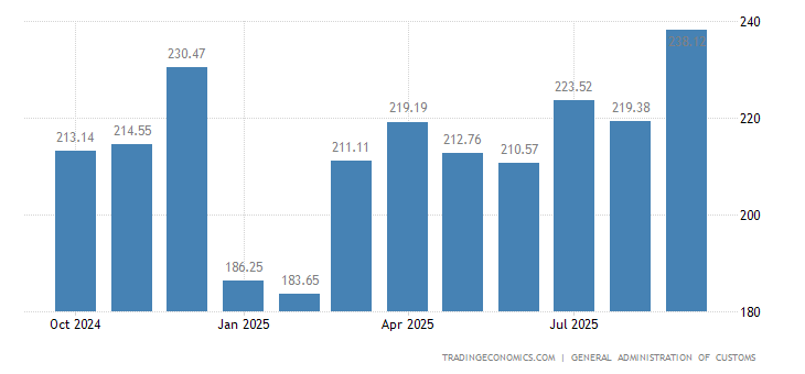 Although Chinese exports took a hit early in the pandemic, they have recovered quickly and have kept rising beyond pre-pandemic levels with imports following a similar trend.